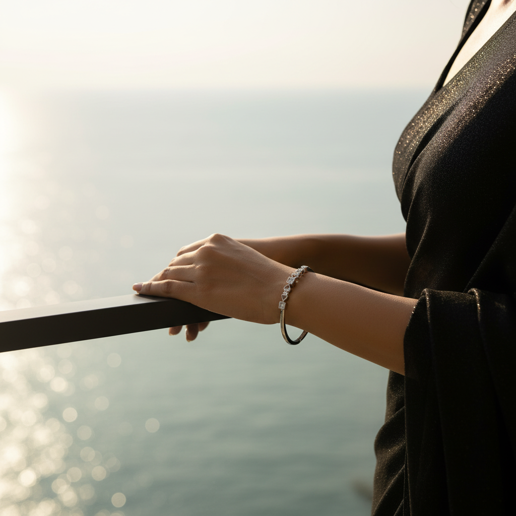 The CORDIAQ Cuff combines contemporary design with everyday versatility. Crafted from premium 925 silver, this lightweight piece features an elegant mix of square and heart shapes adorned with sparkling cubic zirconia stones. Its refined aesthetic seamlessly transitions from professional office settings to relaxed evening occasions, complementing both Western and traditional Indian ensembles with equal grace. Designed for those who appreciate quality without compromise, this durable cuff offers the perfect balance of sophistication and comfort for daily wear.